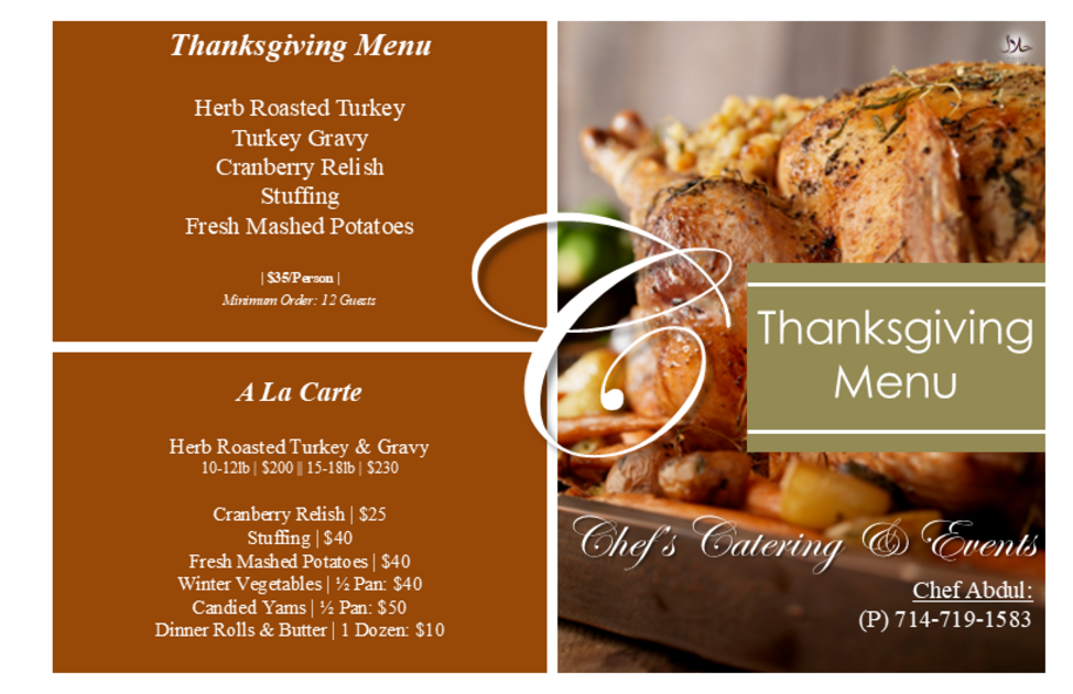 Delivery Only | Contact Chef Abdul directly at 714-719-1583